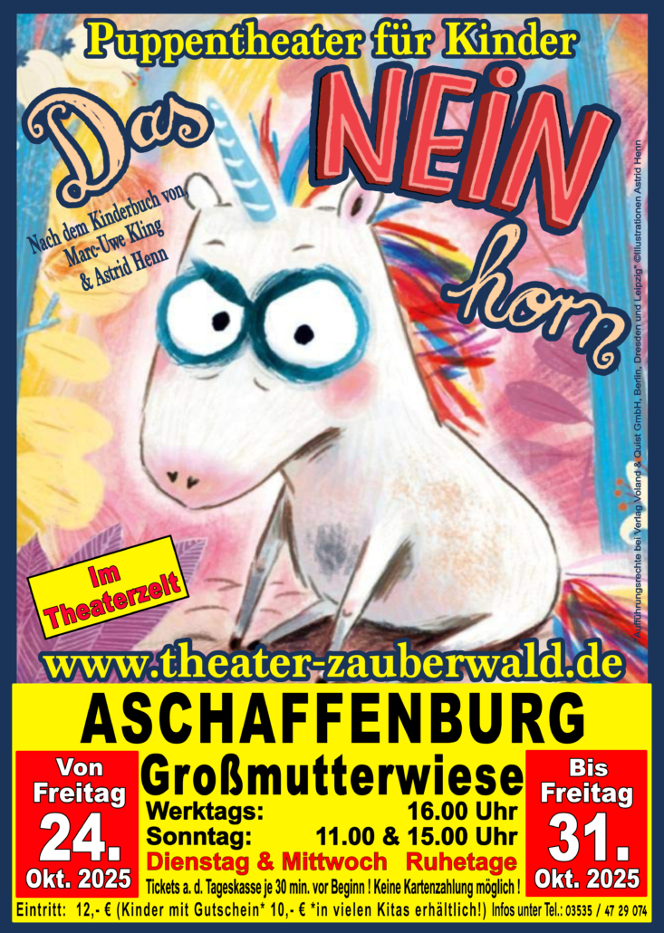 der Familie Sperlich ist seit vielen in ganz Deutschland unterwegs und begeistert das Publikum. Tolle Geschichten mit farbenfrohen Bühnenbildern und detailverliebten Handpuppen, wie zum Beispiel „Das NEINhorn“ von Marc-Uwe Kling & Astrid Henn oder „Der kleine Rabe Socke“ von Nele Most & Annett Rudolph erwarten Euch bei einem Besuch im Theater Zauberwald.